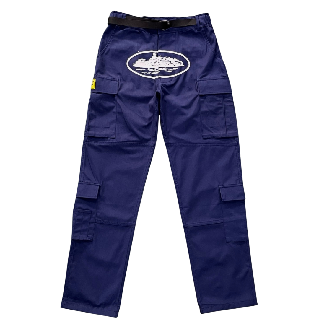 Corteiz Alcatraz Cargo Pants Navy / Dark Blue / White