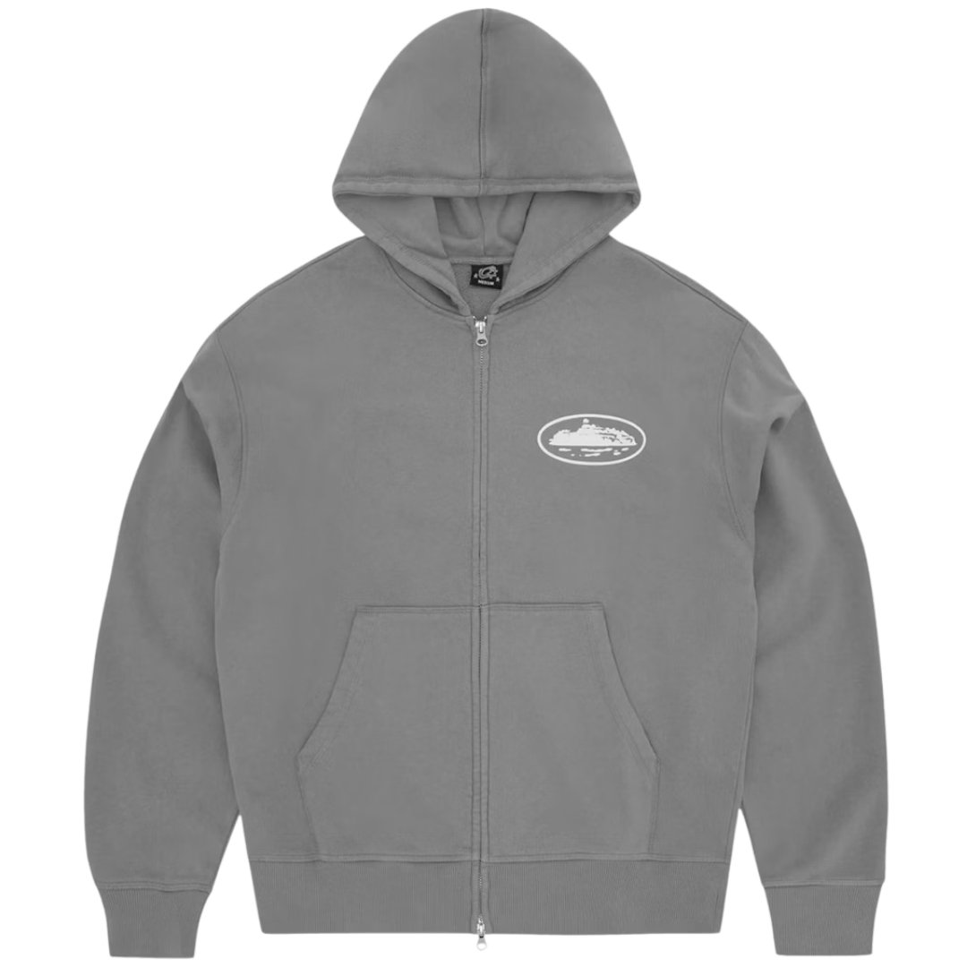 Corteiz Island Puff Print Zip Hoodie Gray