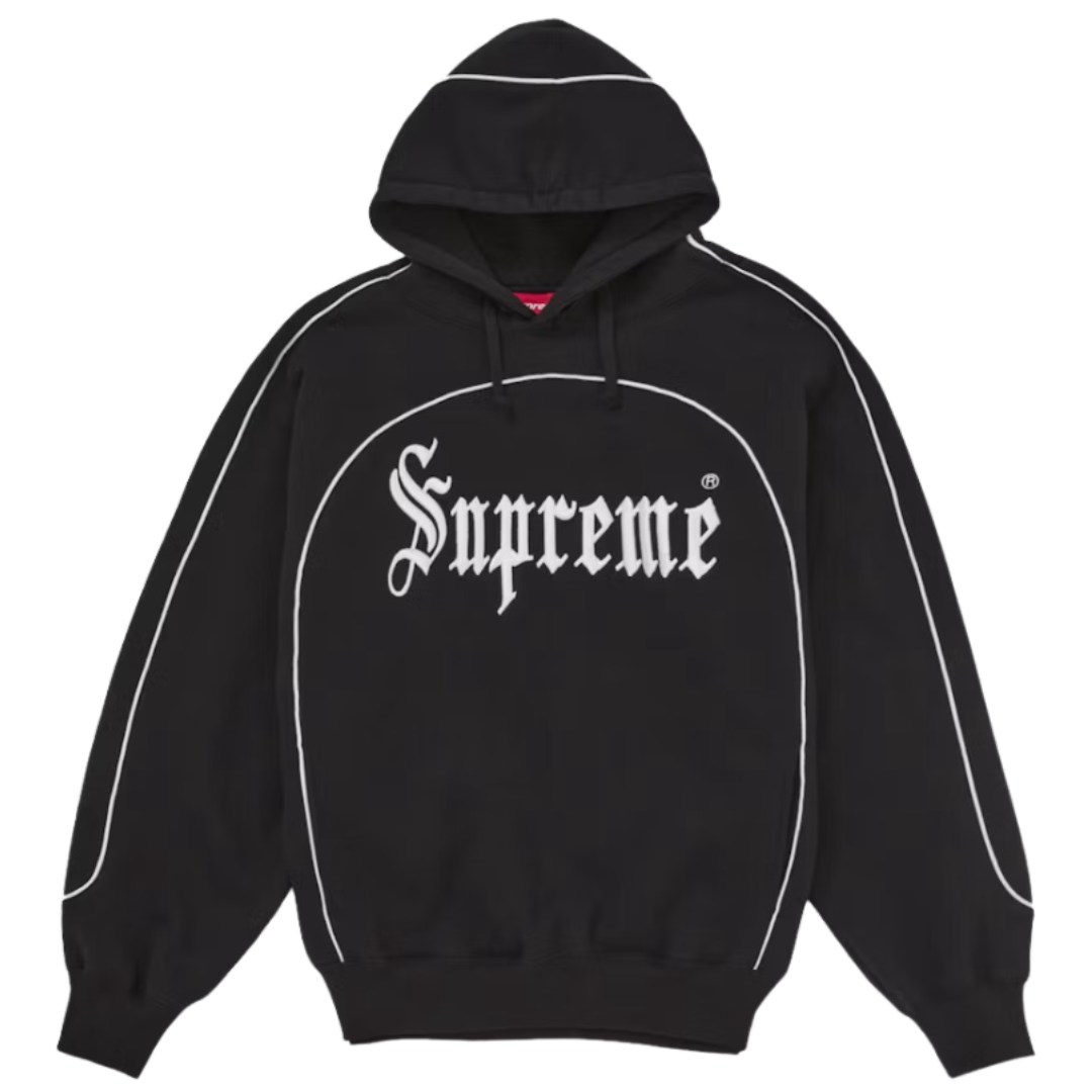 Supreme Curve Piping Hoodie Black / White